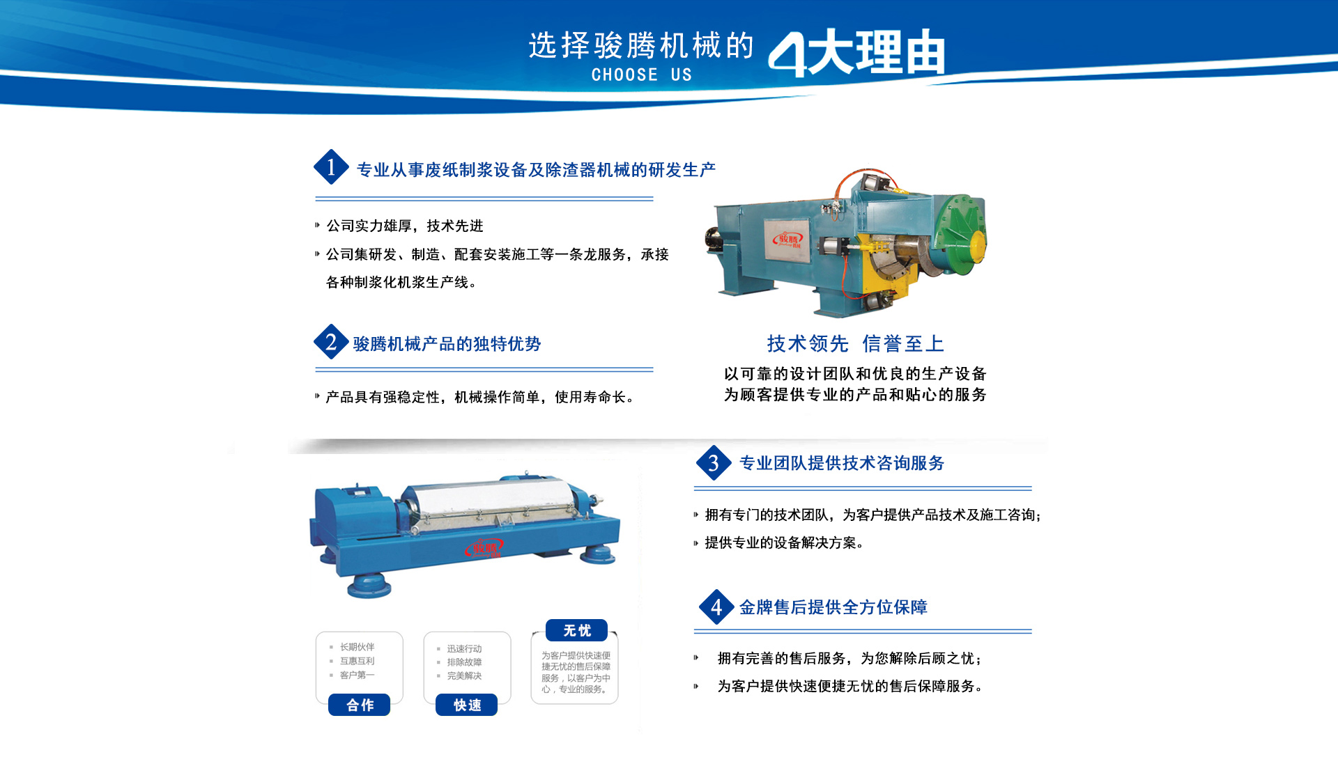 安丘市駿騰機(jī)械制造有限公司位于中國(guó)風(fēng)箏之都濰坊南35公里,座落在青云湖畔,是具有活力的安丘市興安街道工業(yè)園。 依托風(fēng)箏之都完善的工業(yè)基礎(chǔ)和發(fā)達(dá)的機(jī)械制造業(yè),公司致力于廢紙制漿設(shè)備及除渣器機(jī)械的研究與制造。 公司始終堅(jiān)持以市場(chǎng)需求為先導(dǎo),客戶利益為目標(biāo),嚴(yán)格執(zhí)行國(guó)家技術(shù)及行業(yè)標(biāo)準(zhǔn),保證產(chǎn)品品質(zhì),提供專業(yè)服務(wù),用專業(yè)的產(chǎn)品與真誠(chéng)的客戶實(shí)現(xiàn)共同發(fā)展,是我們終生奮斗的目標(biāo)。讓我們攜手共進(jìn),創(chuàng)造美好明天。 我們熱情期待著您的光臨指導(dǎo),洽談業(yè)務(wù)! 查看更多>>